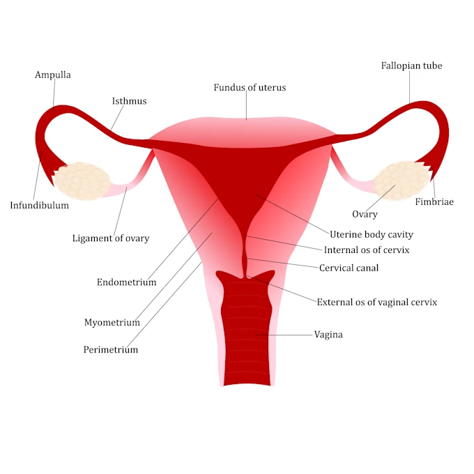 Die Gebärmutter hat die Form einer umgedrehten Birne. Ihr größerer, oben liegender Teil wird Gebärmutterkörper (Corpus uteri) genannt. In ihn münden links und rechts die Eileiter. Der nach unten anschließende Gebärmutterhals (Zervix uteri) ist kurz und röhrenförmig und stellt die Verbindung zur Scheide her. Zum Gebärmutterkörper hin öffnet sich der Hals mit dem inneren Muttermund, zur Scheide hin mit dem äußeren Muttermund. Dort entnimmt der Frauenarzt routinemäßig die Krebsabstriche zur Früherkennung.